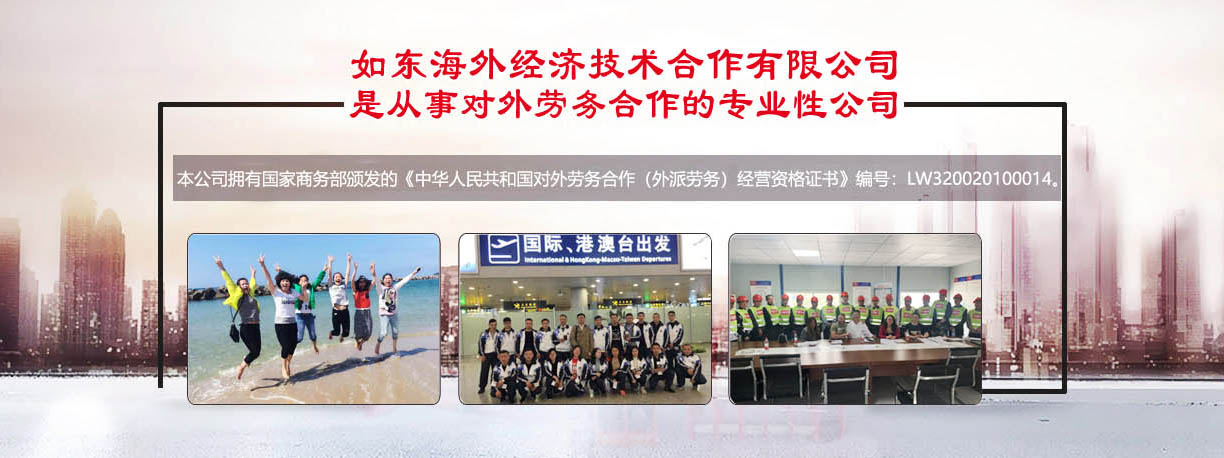 是從事對(duì)外勞務(wù)合作的專業(yè)性公司,本公司擁有國(guó)家商務(wù)部頒發(fā)的《中華人民共和國(guó)對(duì)外勞務(wù)合作(外派勞務(wù))經(jīng)營(yíng)資格證書(shū)》編號(hào):LW320020100014。從一九九五年開(kāi)展勞務(wù)合作以來(lái),積極開(kāi)拓進(jìn)取,先后向日本、加拿大、新加坡、韓國(guó)等國(guó)家派遣勞務(wù)人員近1萬(wàn)5千余人。勞務(wù)合作行業(yè)主要有服裝(車工、裁剪、整燙、制板、維修、車間管理)、針織業(yè)(織布、漂染、針織、橫機(jī)、套口羊毛衫工)、建筑工程(技術(shù)人員、瓦工、鋼筋工、拌灰工、木工、油漆工、電工、鋁合金工、水暖工等)、機(jī)械工(銑床、車床、沖床、鉆床、鑄造等)電焊工(壓力容器、亞弧焊、建筑設(shè)備安裝、船舶、管道工)、遠(yuǎn)洋捕撈(職務(wù)船員、普通漁工、水手),高級(jí)廚師(川菜、粵菜、京菜、淮揚(yáng)菜)、電子裝配、園藝、蔬菜種植、桑蠶飼養(yǎng)、海、淡水養(yǎng)殖、護(hù)士、翻譯(英語(yǔ)、日語(yǔ)、韓國(guó))等,日本辦事處設(shè)在日本東京、廣島主要負(fù)責(zé)管理和服務(wù)日本研修生及貿(mào)易方面的聯(lián)絡(luò)工作,國(guó)外辦事處和中國(guó)公司現(xiàn)有工作人員25人,專職勞務(wù)工作人員10人,從事勞務(wù)行業(yè)均10年以上,翻譯、培訓(xùn)教師5人,外教2人,會(huì)計(jì)3人,業(yè)務(wù)人員5人。